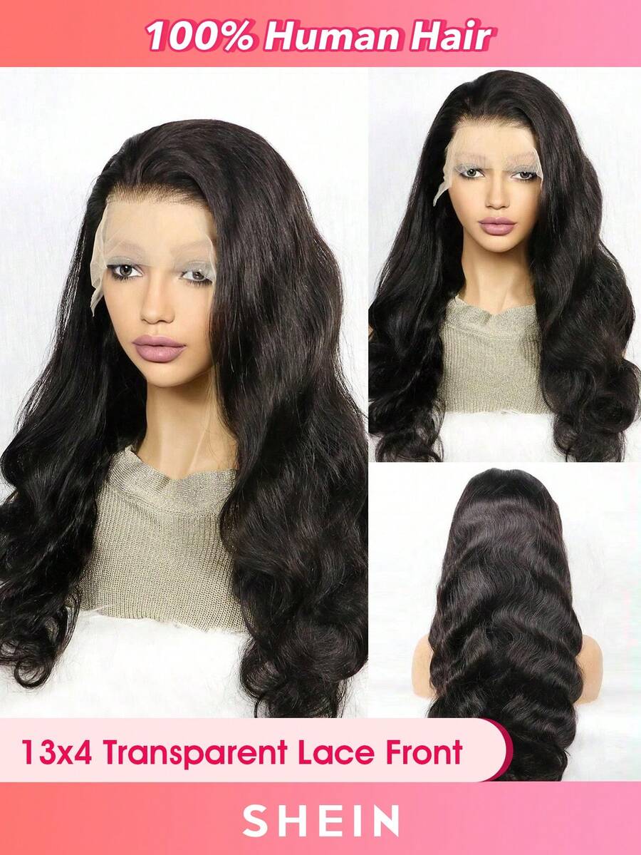 Transparent Lace Body Wave 13 X 4 Lace Front Human Hair Wigs For Women With Baby Hair Extra Long Pre Plucked Hand-Made Natural Black Color 180 Density 30-40 Inch