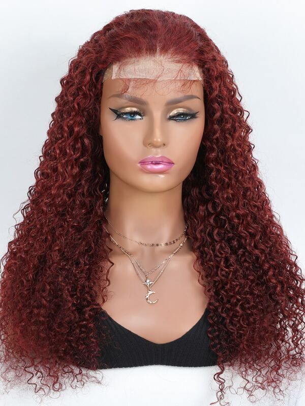 Transparent Swiss Lace Jerry Curl 4 X 4 Closure Human Hair Wig Bleached Knots Pre Plucked Remy Reddish Brown Hair Baby Hair For Woman Natural Black Color