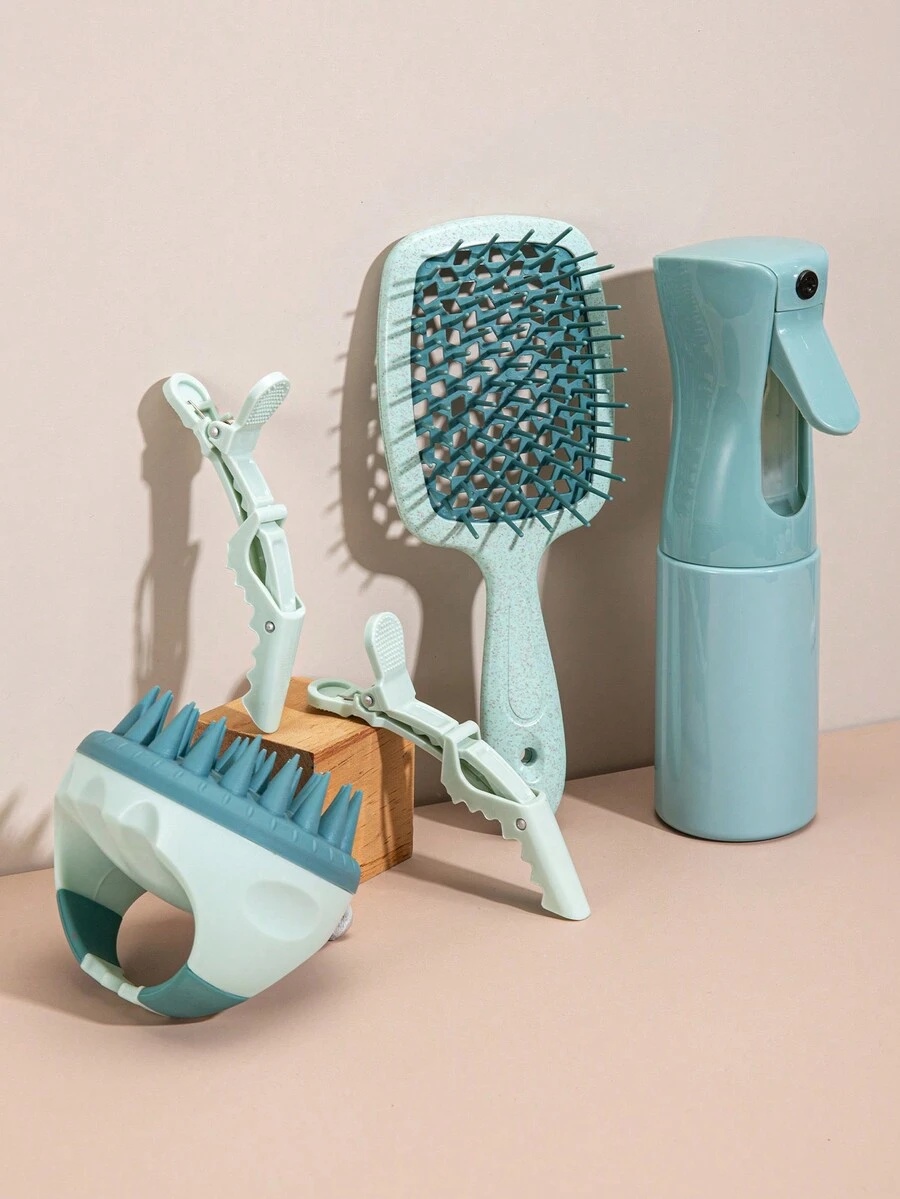 Travel/Home Set, Hollow Comb, Hollow Massage Comb, Rolling Comb, Round Comb, Hair Twister, Crocodile Clip, Hairdressing Clip With Storage Bag