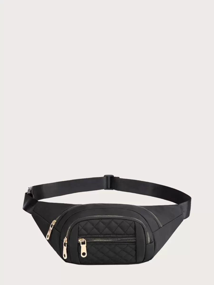 Trendy Argyle Quilted Waist Bag Casual Multi-Pocket Zipper Fanny Pack Perfect Belt Bag for Outdoor Travel and Daily Use Simple Waist Bag, Women's Quilted Zipper Front Fanny Pack For Outdoor Sports