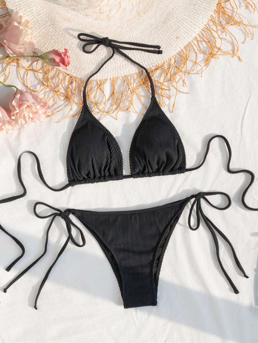 SHEIN Swim Basics Triangular Cup Halterneck Bikini Swimsuit Set