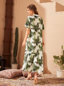 SHEIN Mulvari Tropical Print Button Up Smock Dress