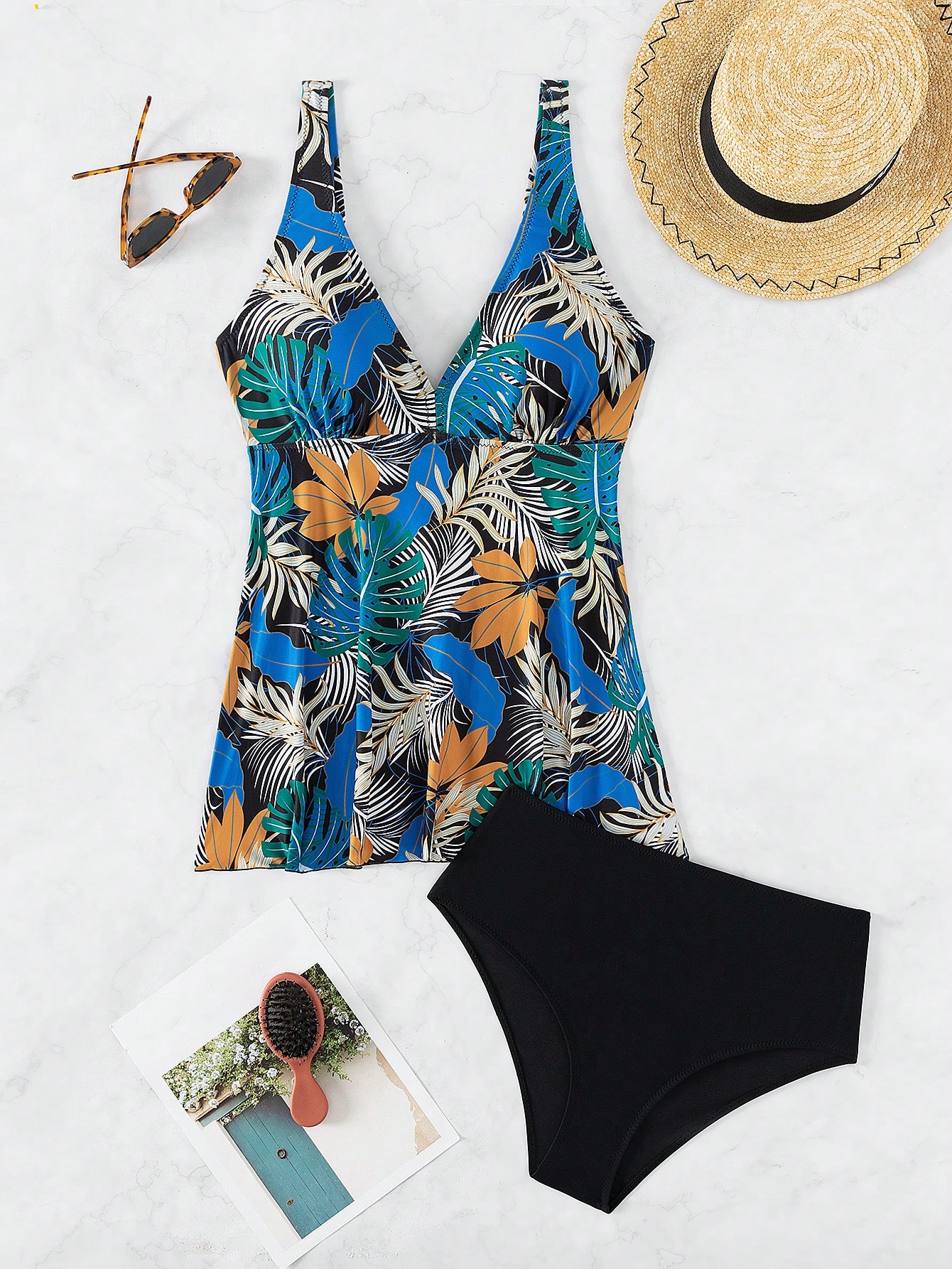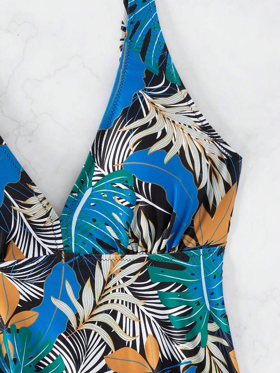 SHEIN Swim Classy Tropical Print Ruffle Hem Tie Back Bikini Swimsuit