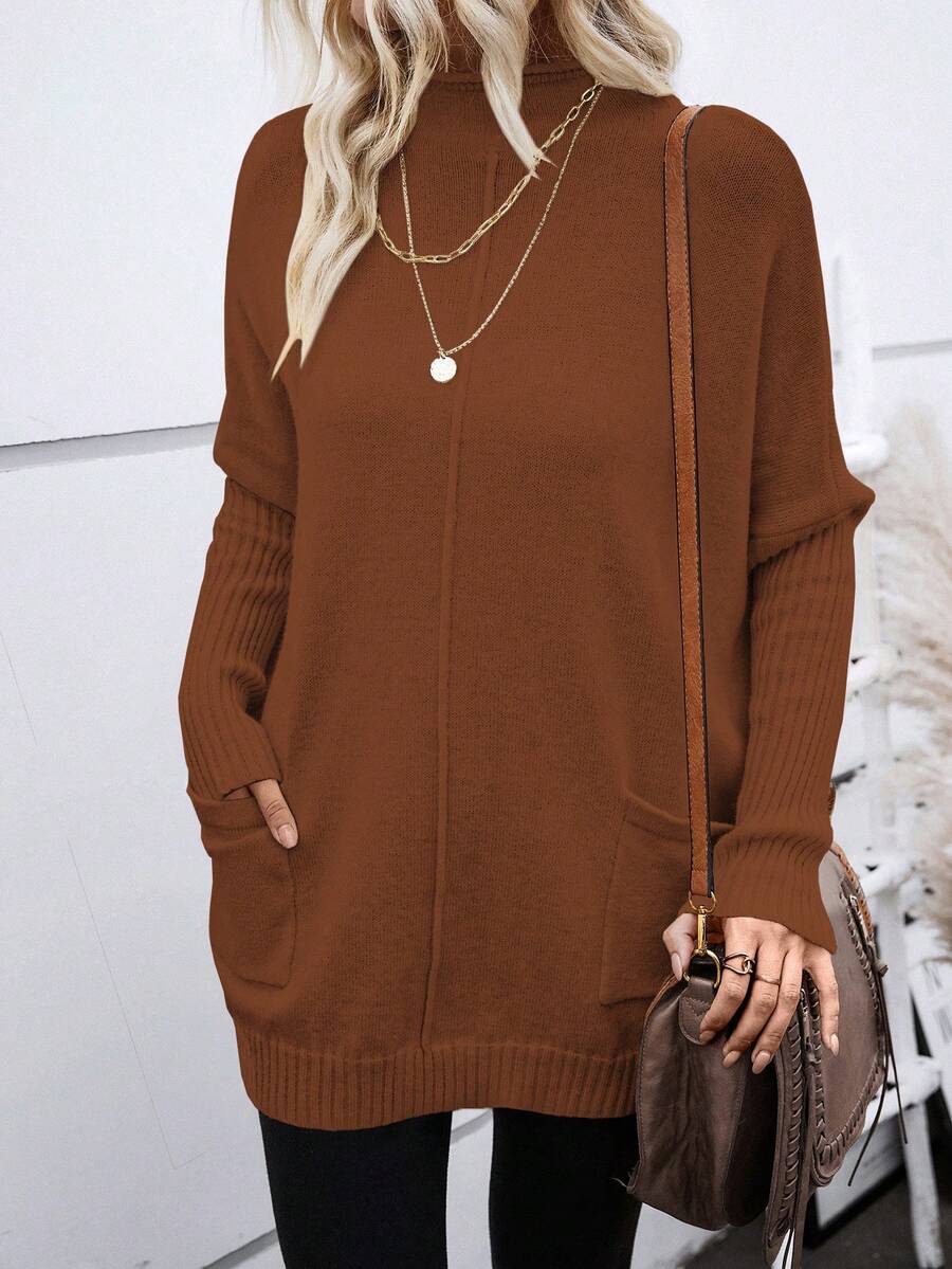SHEIN LUNE Turtleneck Batwing Sleeve Pocket Patched Sweater