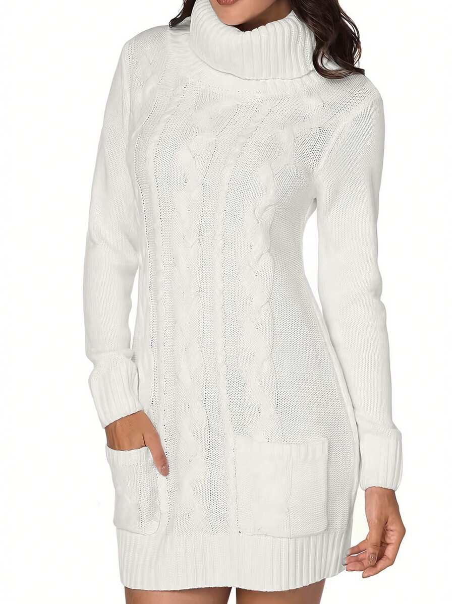 SHEIN LUNE Turtleneck Cable Knit Bodycon Sweater Dress