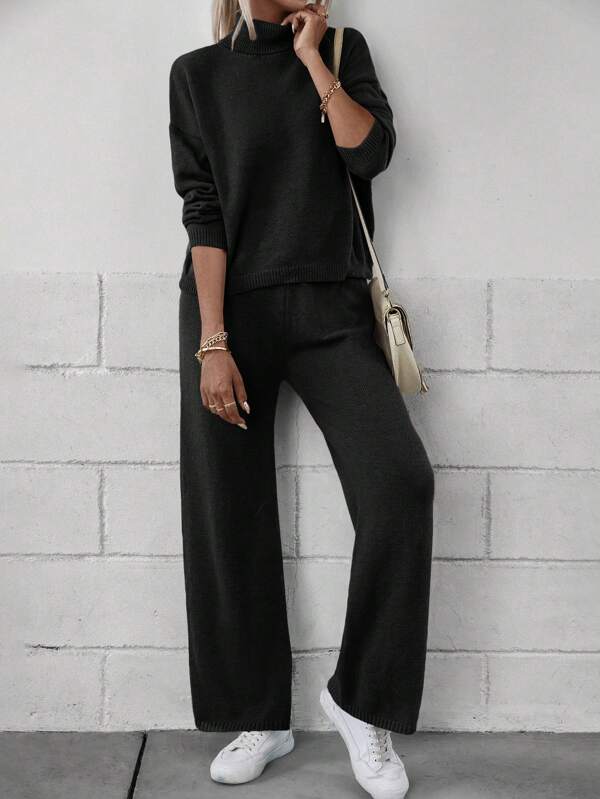 SHEIN Essnce Turtleneck Drop Shoulder Sweater & Knit Pants