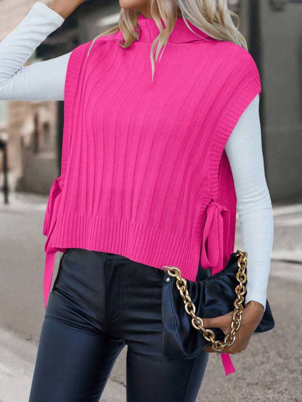 SHEIN Essnce Turtleneck Knot Side Sweater Vest Without Tee