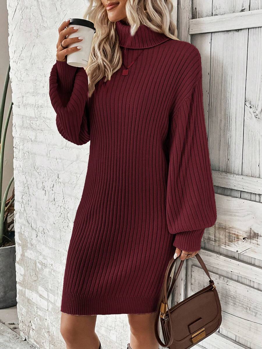 SHEIN LUNE Turtleneck Lantern Sleeve Drop Shoulder Sweater Dress