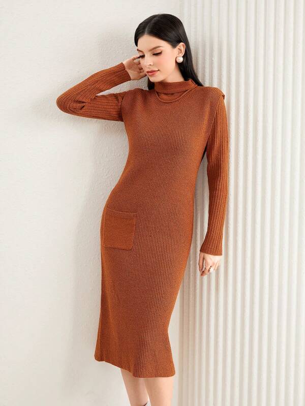 SHEIN Mulvari Turtleneck Pocket Patched Sweater Dress & Sweater