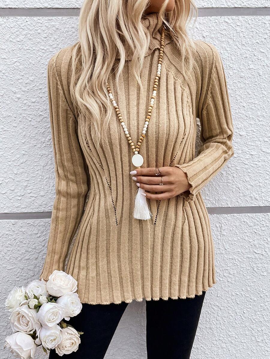 SHEIN LUNE Turtleneck Raglan Sleeve Ribbed Knit Sweater