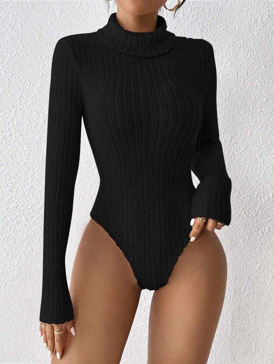 SHEIN PETITE Turtleneck Ribbed Knit Bodysuit