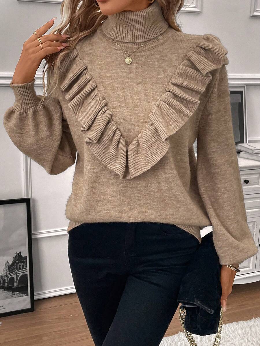 SHEIN LUNE Turtleneck Ruffle Trim Lantern Sleeve Sweater