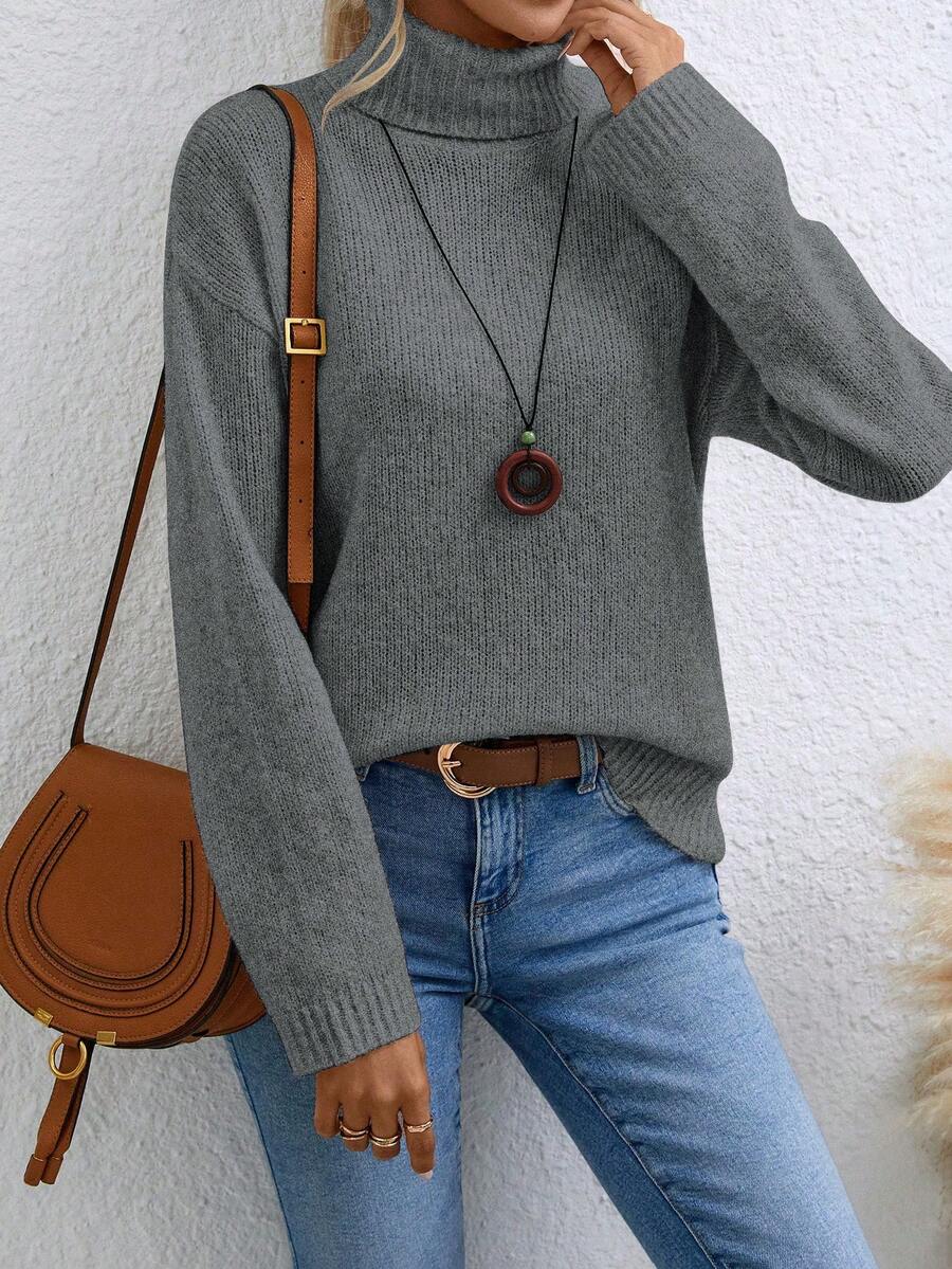 SHEIN Essnce Turtleneck Solid Color Casual Sweater