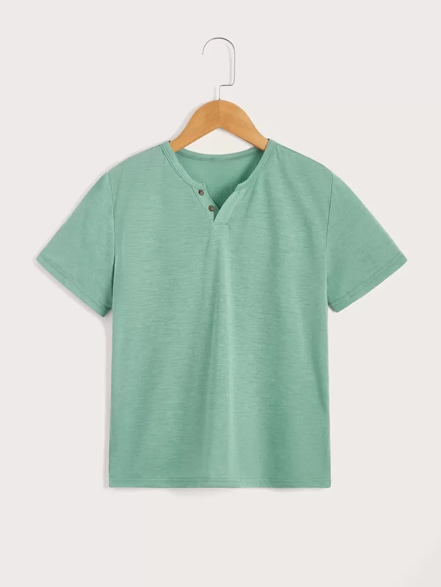 SHEIN Kids EVRYDAY Tween Boy's Colorblock Knitted Button Detail T-Shirt In Simple And Casual Style, Suitable For Summer Daily Wear