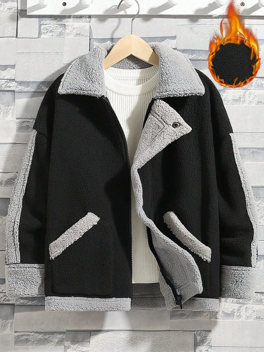 SHEIN Tween Boy 1pc Contrast Trim Teddy Lined Zip Up Fleece Coat