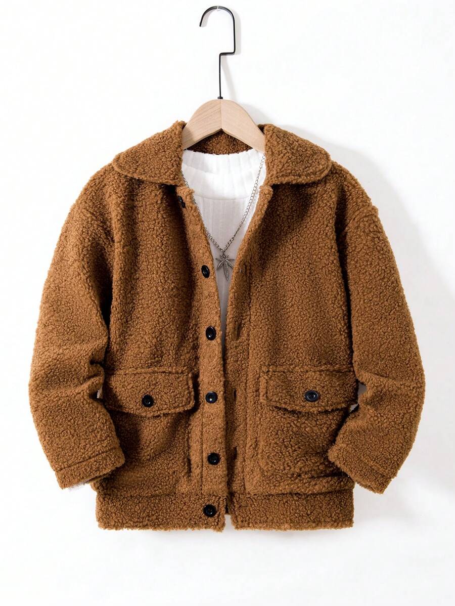Tween Boy 1pc Flap Pocket Teddy Coat