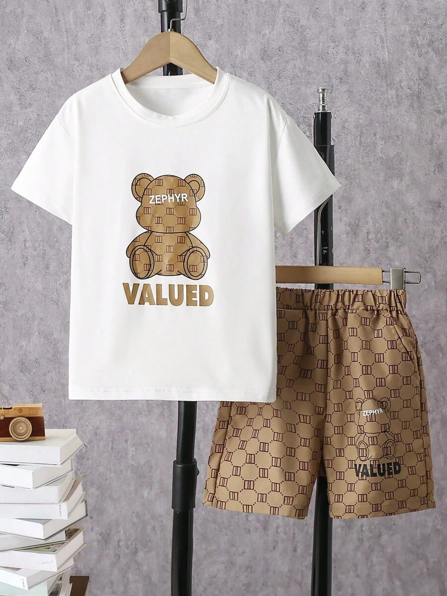 SHEIN Tween Boy Bear & Letter Graphic Tee & Shorts