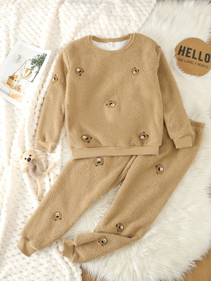 Tween Boy Bear Embroidery Flannel PJ Set