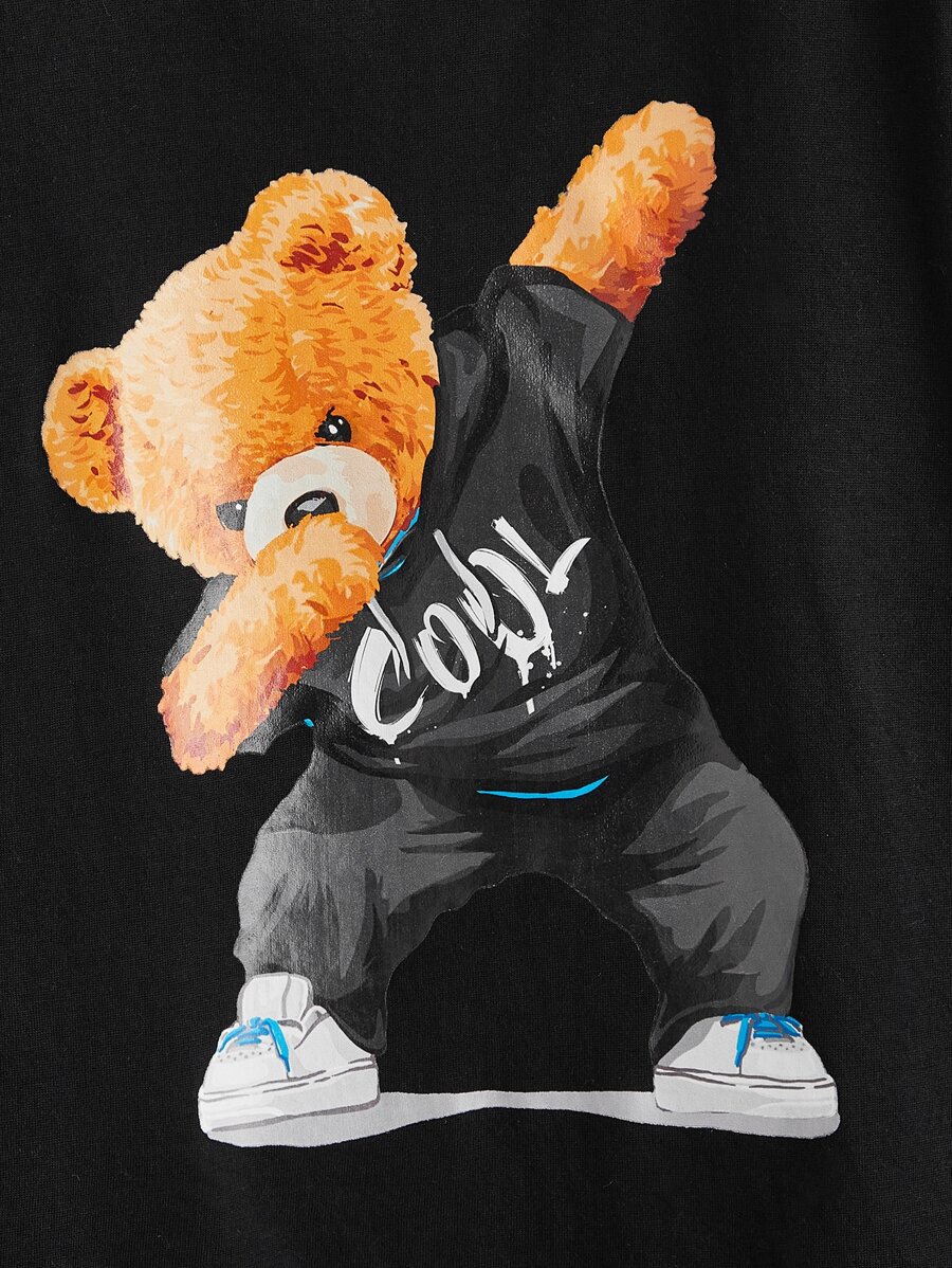 SHEIN Kids QTFun Leisure Knit Long Sleeve Round Neck Patterned Tween Boy Teddy Bear Print T-Shirt