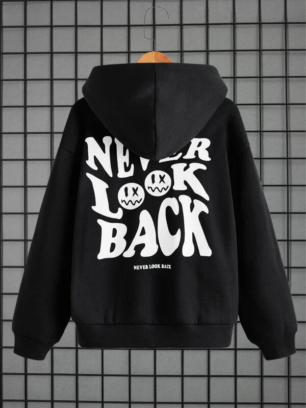 SHEIN Kids HYPEME Tween Boy Cartoon & Slogan Graphic Drop Shoulder Hoodie