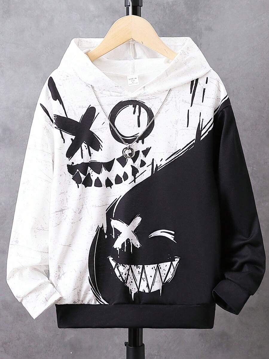 SHEIN Tween Boy Cartoon Graphic Two Tone Hoodie