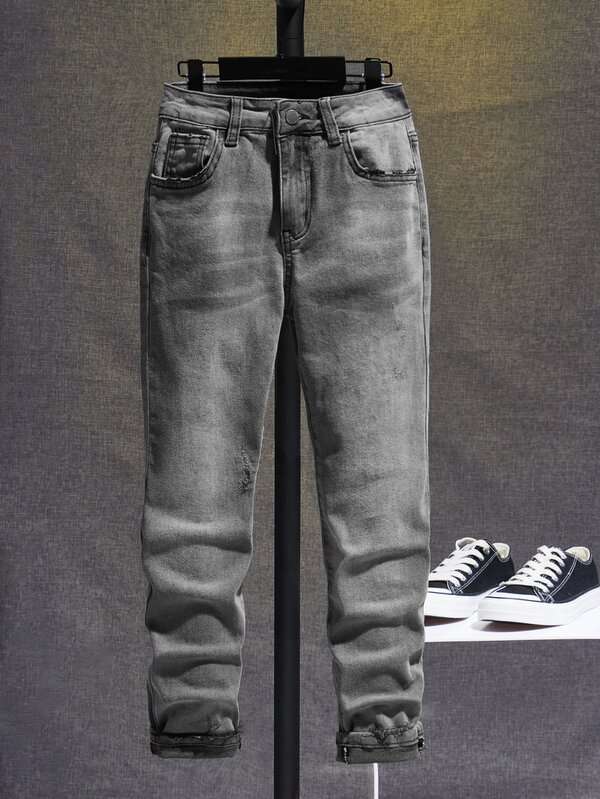 SHEIN Tween Boy Cat Whisker Bleach Wash Jeans