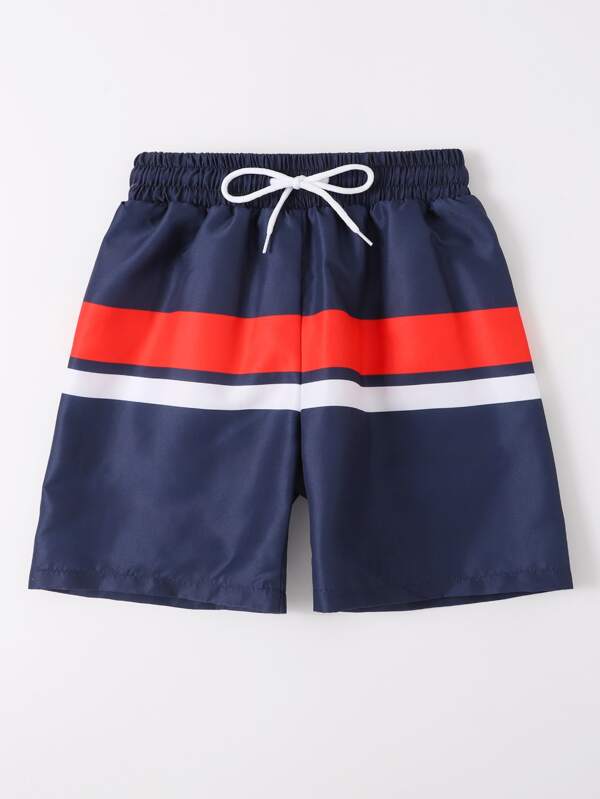 Tween Boy Color Block Drawstring Waist Swim Shorts