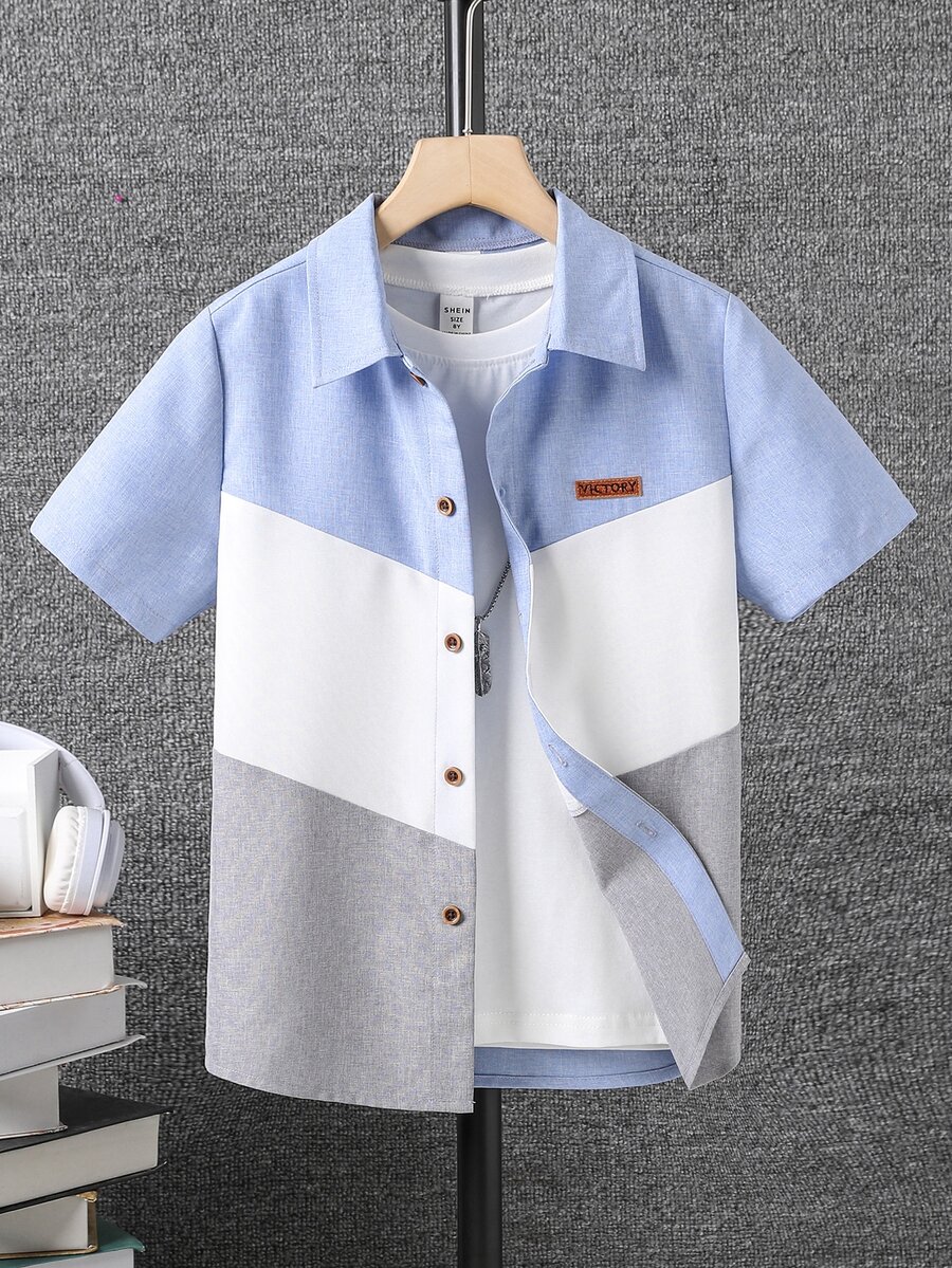 SHEIN Tween Boy Color Block Letter Patched Detail Shirt Without Tee