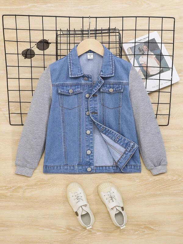 SHEIN Tween Boy Flap Pocket Denim Jacket