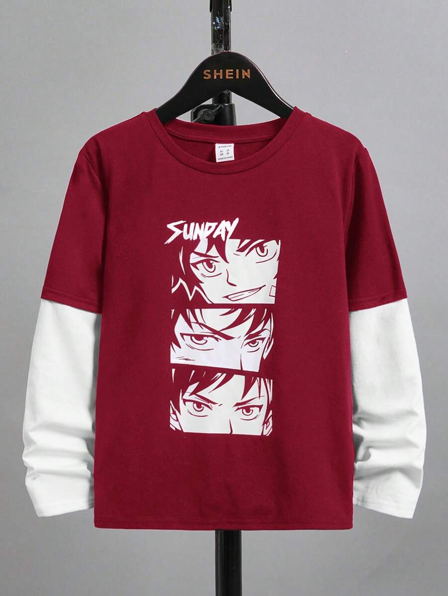 SHEIN Kids EVRYDAY Tween Boy Japanese Letter & Figure Graphic 2 In 1 Tee