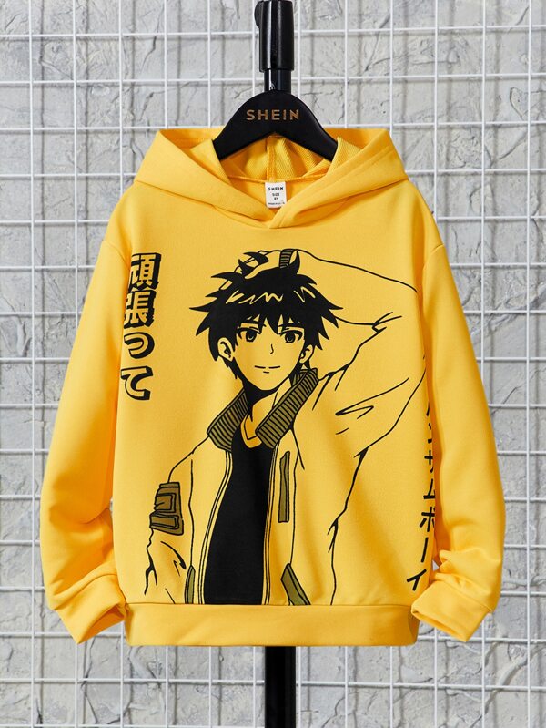 SHEIN Kids EVRYDAY Tween Boy Japanese Letter & Figure Graphic Hoodie