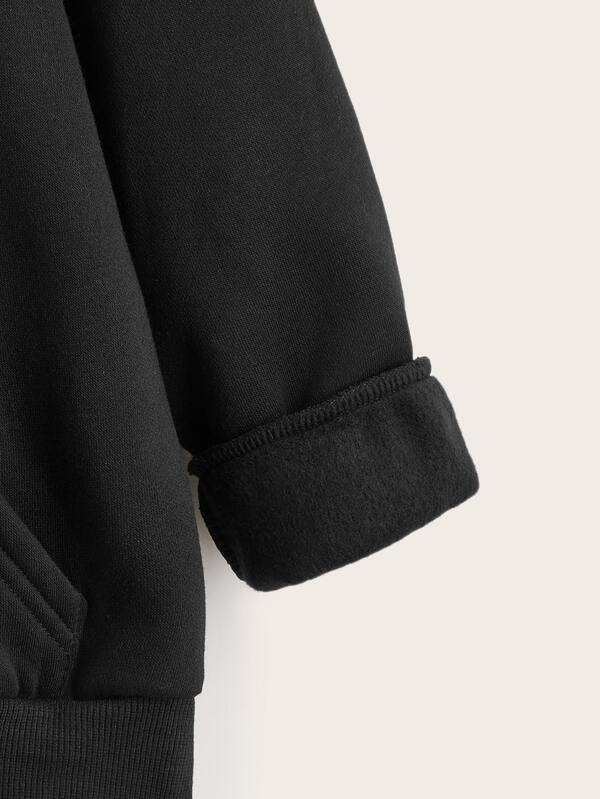 SHEIN Kids EVRYDAY Tween Boys' Spring & Autumn Casual Fitted Long Sleeve Hooded Sweatshirt With Kangaroo Pocket And Fleece Lining