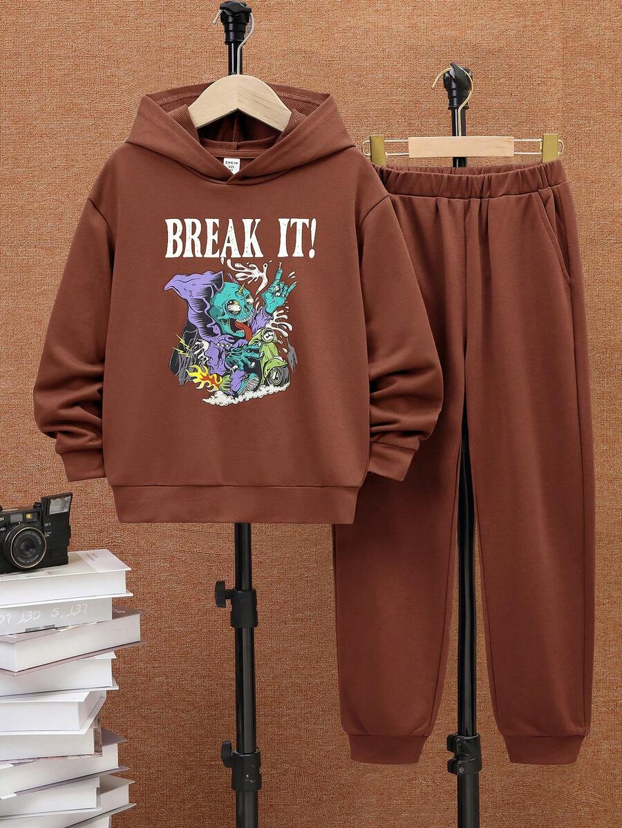 SHEIN Tween Boy Letter & Cartoon Graphic Hoodie & Sweatpants