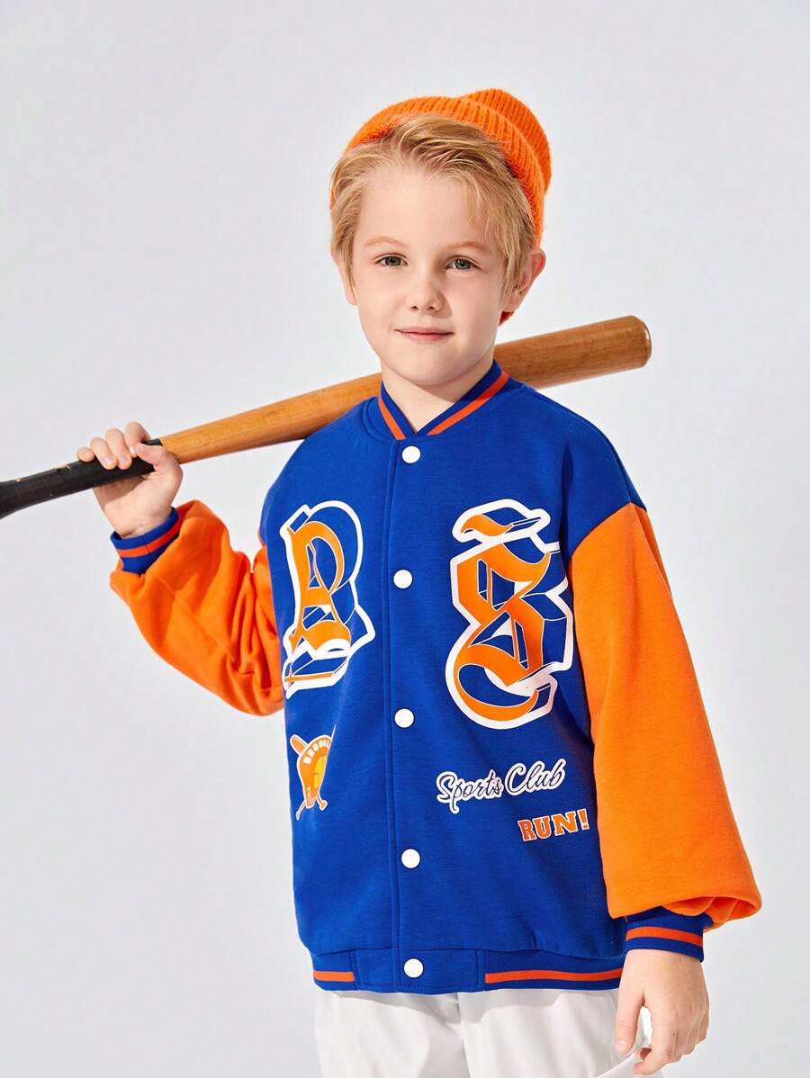 JNSQ Tween Boy Letter Graphic Colorblock Drop Shoulder Varsity Jacket