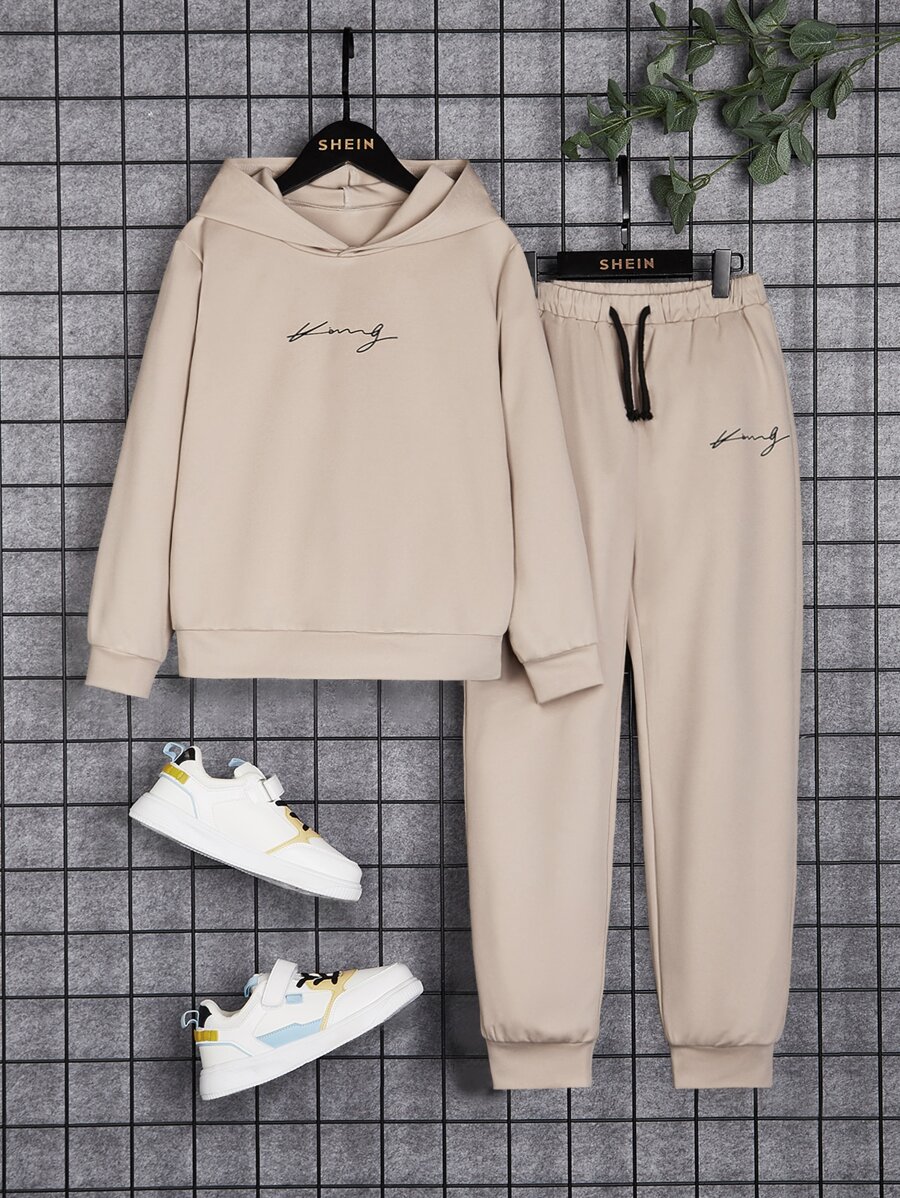 SHEIN Kids EVRYDAY Tween Boy Letter Graphic Hoodie & Sweatpants
