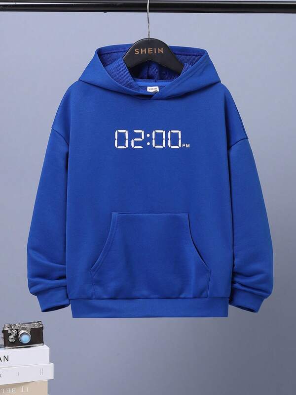 SHEIN Kids EVRYDAY Tween Boy Letter Graphic Kangaroo Pocket Drop Shoulder Hoodie