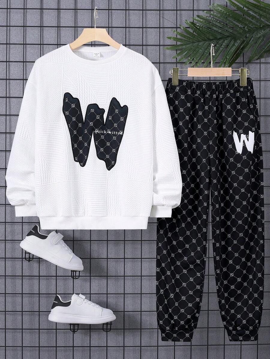 SHEIN Kids EVRYDAY Tween Boy Letter Graphic Sweatshirt & Geo Print Pants