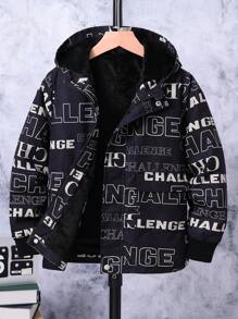 SHEIN Tween Boy Letter Graphic Teddy Lined Hooded Coat