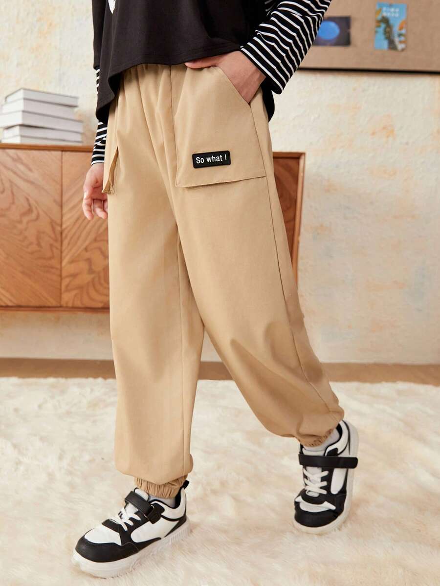 SHEIN Tween Boy Letter Patched Detail Flap Pocket Side Pants