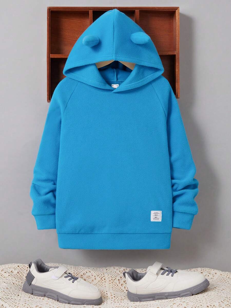 SHEIN Tween Boy Letter Patched Detail Raglan Sleeve 3D Ears Design Hoodie