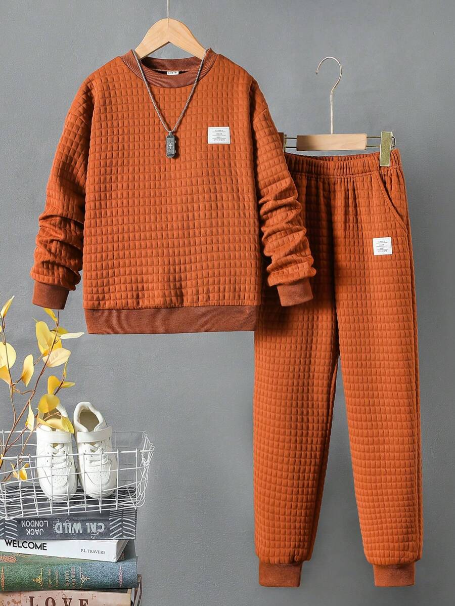 SHEIN Tween Boy Letter Patched Quilted Pullover & Sweatpants