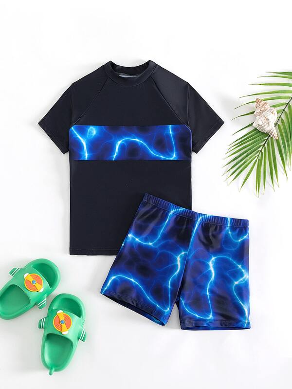 Tween Boy Lightning Pattern Beach Swimsuit