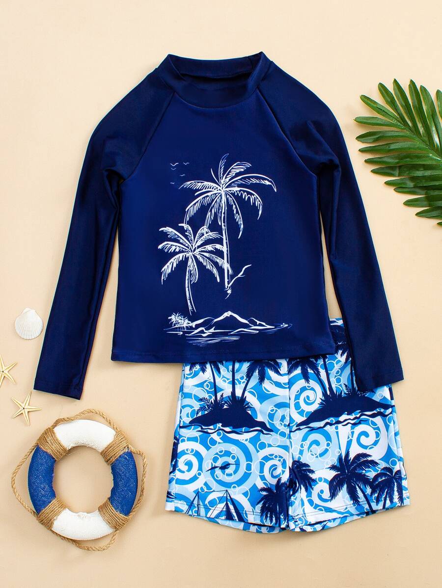Tween Boy Palm Tree Print Beach Swimsuit