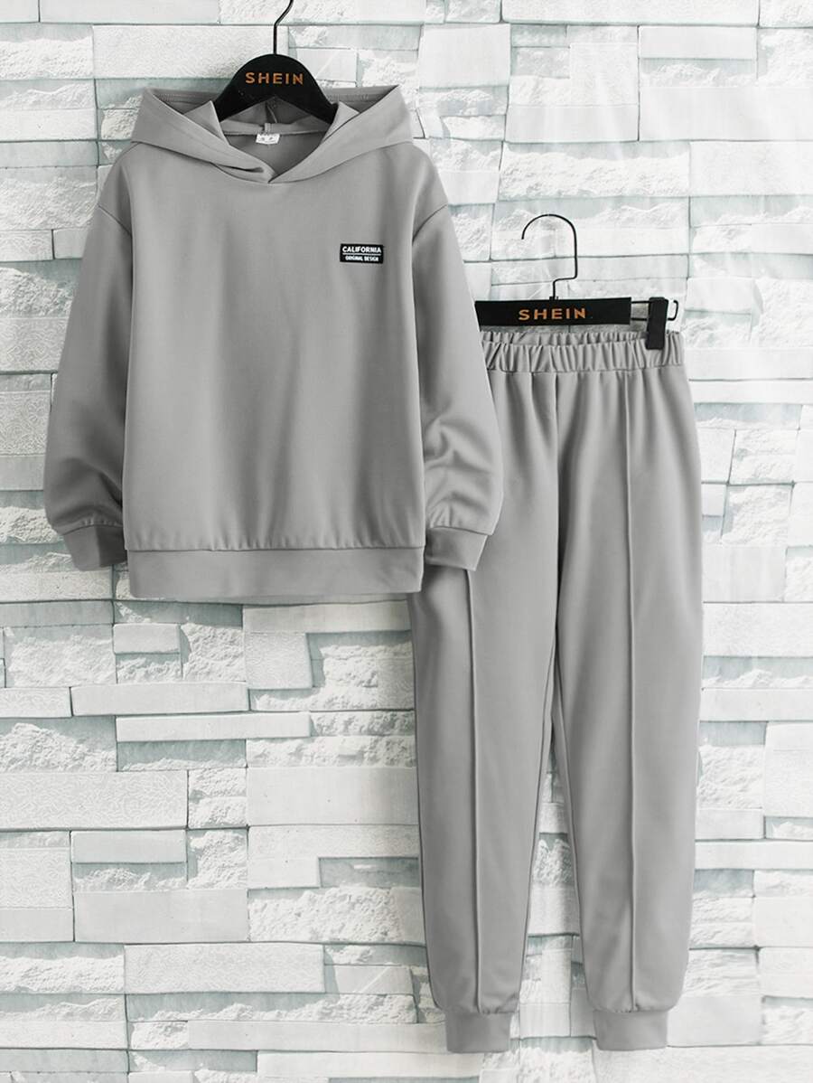 SHEIN Kids EVRYDAY Tween Boy Patched Detail Hoodie & Sweatpants