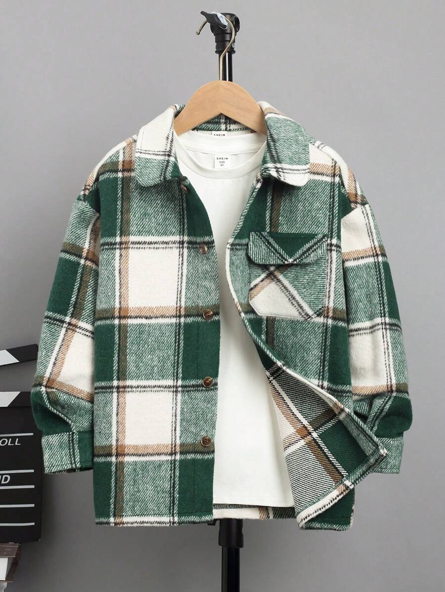 SHEIN Tween Boy Plaid Print Flap Pocket Overcoat Without Tee