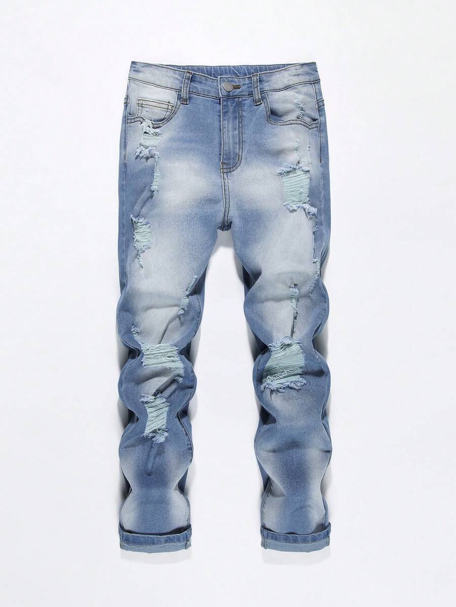 Tween Boy Ripped Frayed Bleach Wash Jeans