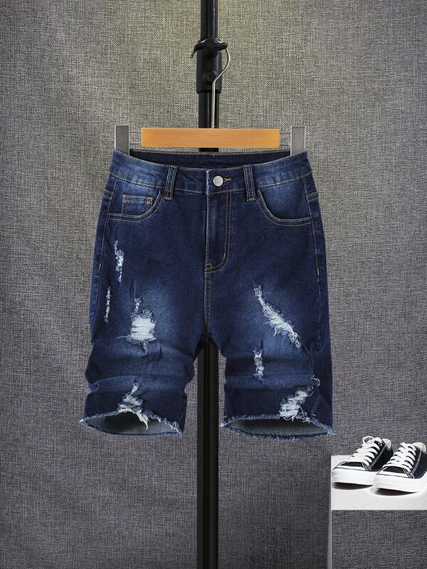 SHEIN Tween Boy Ripped Raw Trim Denim Shorts