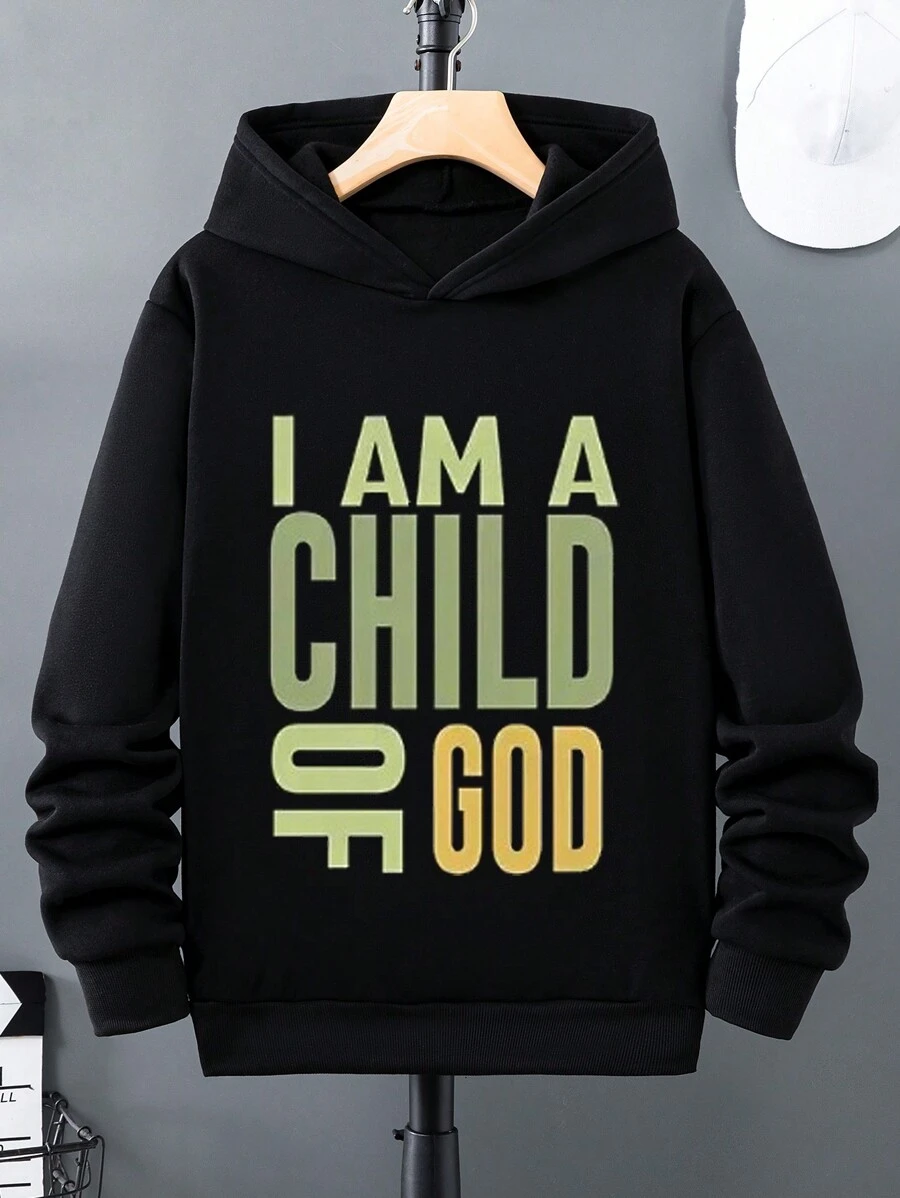 SHEIN Tween Boy Slogan Printed Hooded Long Sleeve Sweatshirt For Autumn And Winter