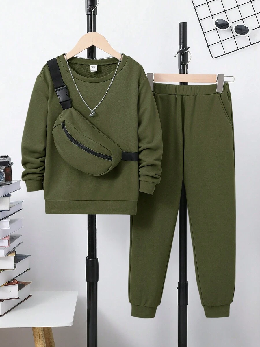 SHEIN Kids EVRYDAY Tween Boy Solid Pullover & Sweatpants & Bag