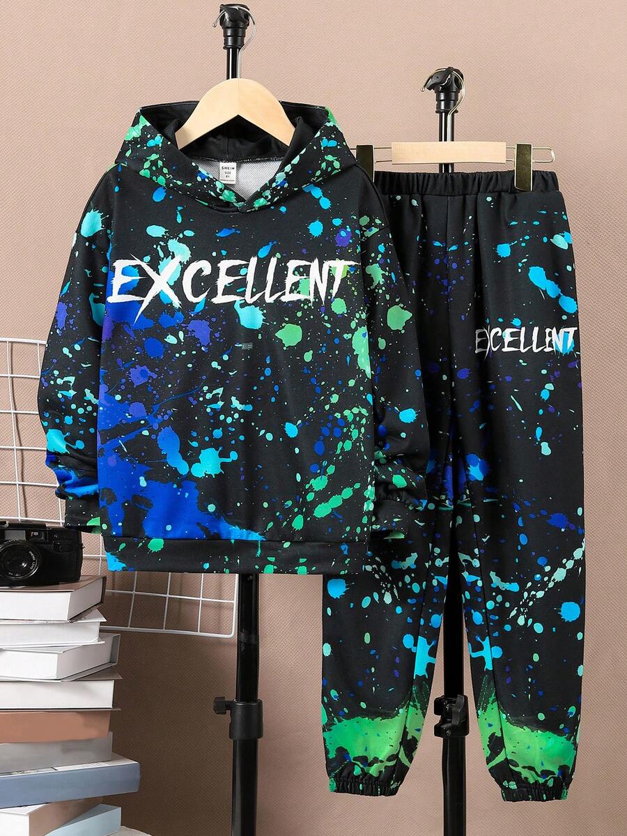 SHEIN Tween Boy Splash Ink & Letter Graphic Hoodie & Sweatpants